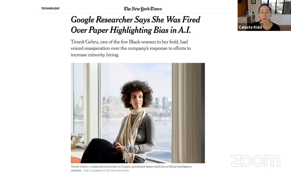 加州大学伯克利分校教授Celeste Kidd的研究课题是人类如何形成认知。Kidd认为,AI系统的偏见强化了使用者的偏见,内容推荐系统会使人们对已有偏见坚信不疑,而亚马逊和领英的AI招聘系统则会对女性候选者造成负面影响。