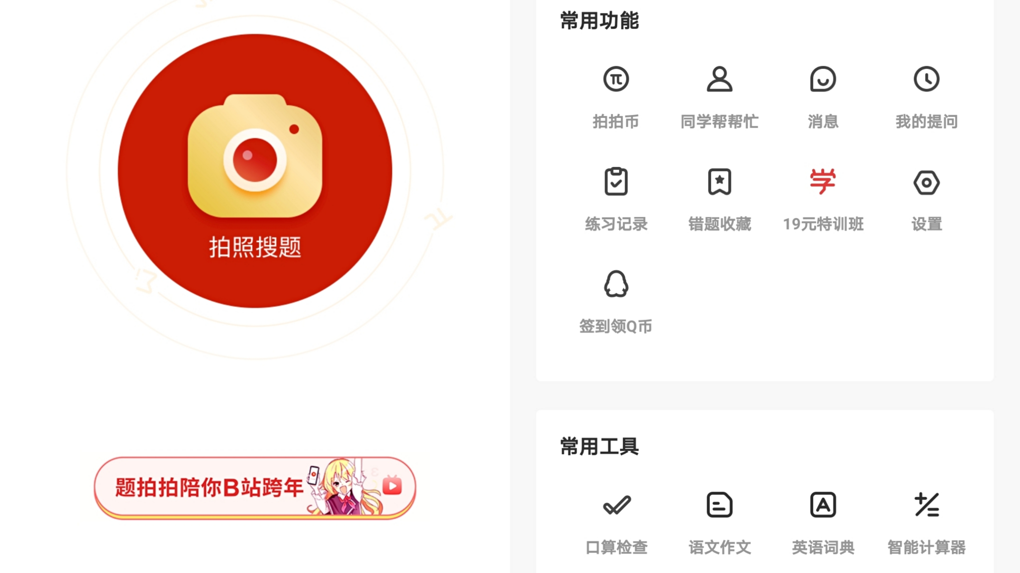可以作为例证的是,即使题拍拍将真人在线免费答题作为宣传噱头,点开题拍拍APP主页,位于最显眼位置的仍是拍照搜题功能。