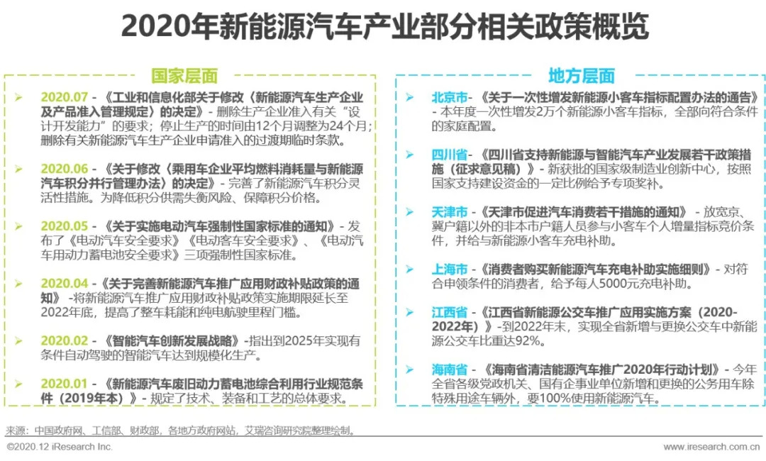 国家、地方政策双轮驱动,强制性标准逐步完善,新能源汽车财政补贴继续延长,持续推动新能源汽车发展浪潮。