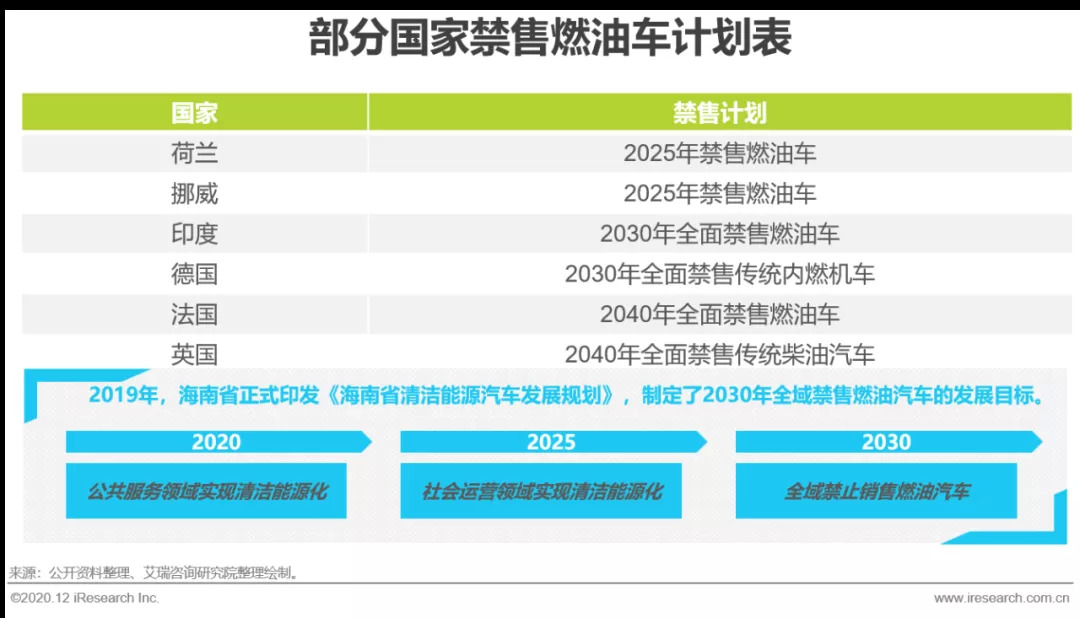 近年来,中国对原油需求的增长早已打破了能源自给自足的供求格局,虽然2019年我国原油产量呈现正增长态势,但原油进口量也突破了5亿吨。根据石油经济技术研究院发布的数据,2019年我国原油对外依存度突破70%,远超50%的国际警戒线。因此,发展电能、氢能等替代能源也提升到了国家战略高度,增强我国在世界能源市场中的竞争力,减轻潜在的国际局势动荡所带来的负面影响。多个国家已通过禁售燃油车法案,减轻对石油的依赖;我国海南省也制定了在2030年禁止销售燃油车的发展目标。