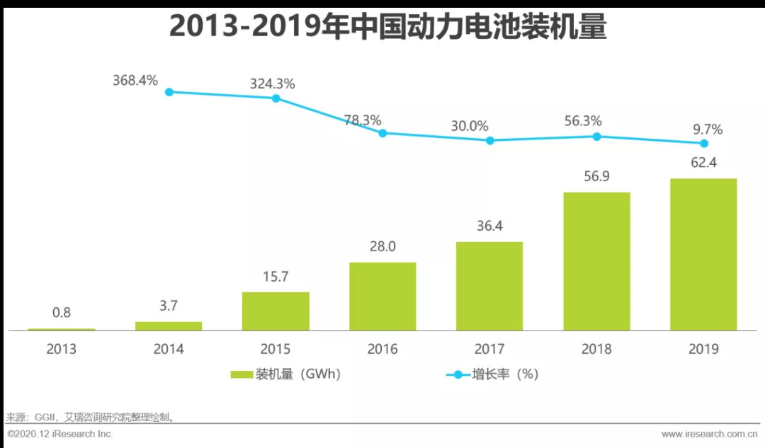 动力电池是纯电动汽车必要的组成部分,按照正级材料可分为三元电池和磷酸铁锂电池,其装机量从2013年到2018年增长了72倍。然而2019年新能源汽车销量出现下滑之际,动力电池装机量增长率降至10%以下,其正增长部分来源于补贴退坡之前的抢装,因此动力电池与新能源汽车市场的景气程度息息相关。同时,三元电池由于其更高的能量密度、容量及低温性能备受车企青睐,2019年三元电池装机量占比达到65.2%,较2017年上升21.2%。
