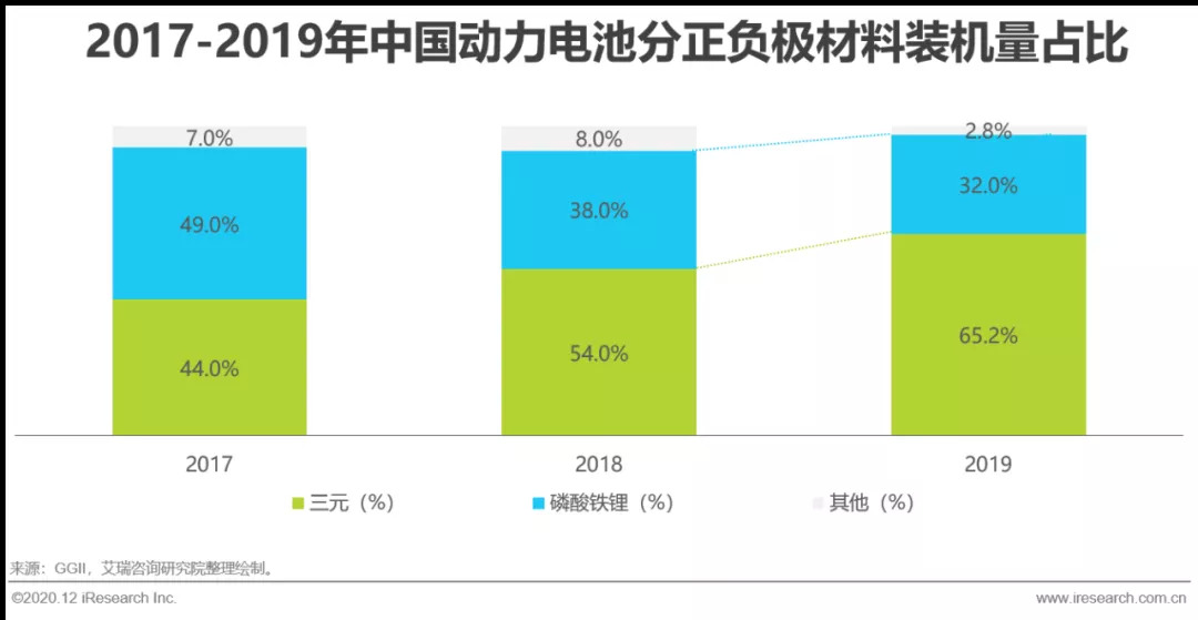 装机量受新能源汽车市场影响较大,三元电池比例不断提升