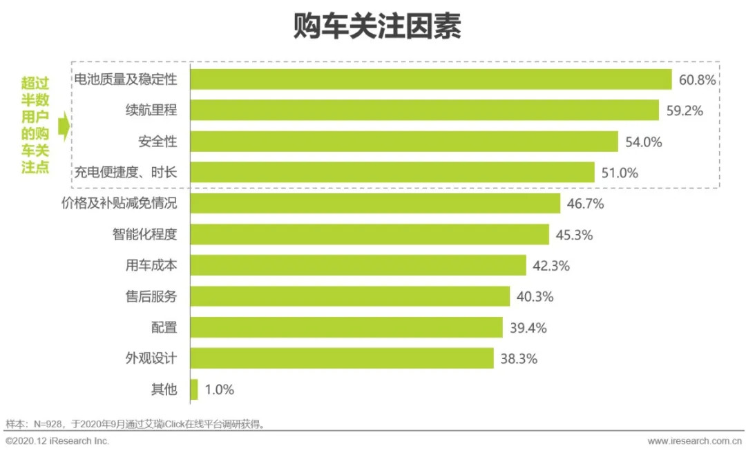电池质量和稳定性为用户购车时关注的主要因素