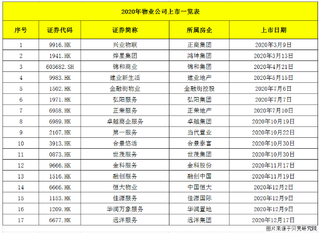 根据克而瑞统计数据显示,2020年9月-11月份,30家上市物业企业股价下跌,部分个股跌幅甚至超过三成;另一方面,10月份上市的3家物业新股,也接连遭遇破发状况。