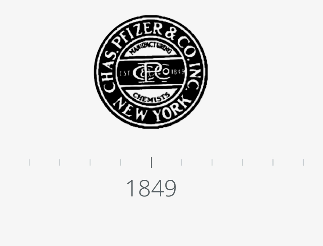 根据收入排名,如今的辉瑞已经发展成全球最大的制药公司。其创立于1849年,而其最早的logo不是椭圆,而是圆形,里面加上了创始人的名字“Pfizer”。1940年后更换成椭圆形。