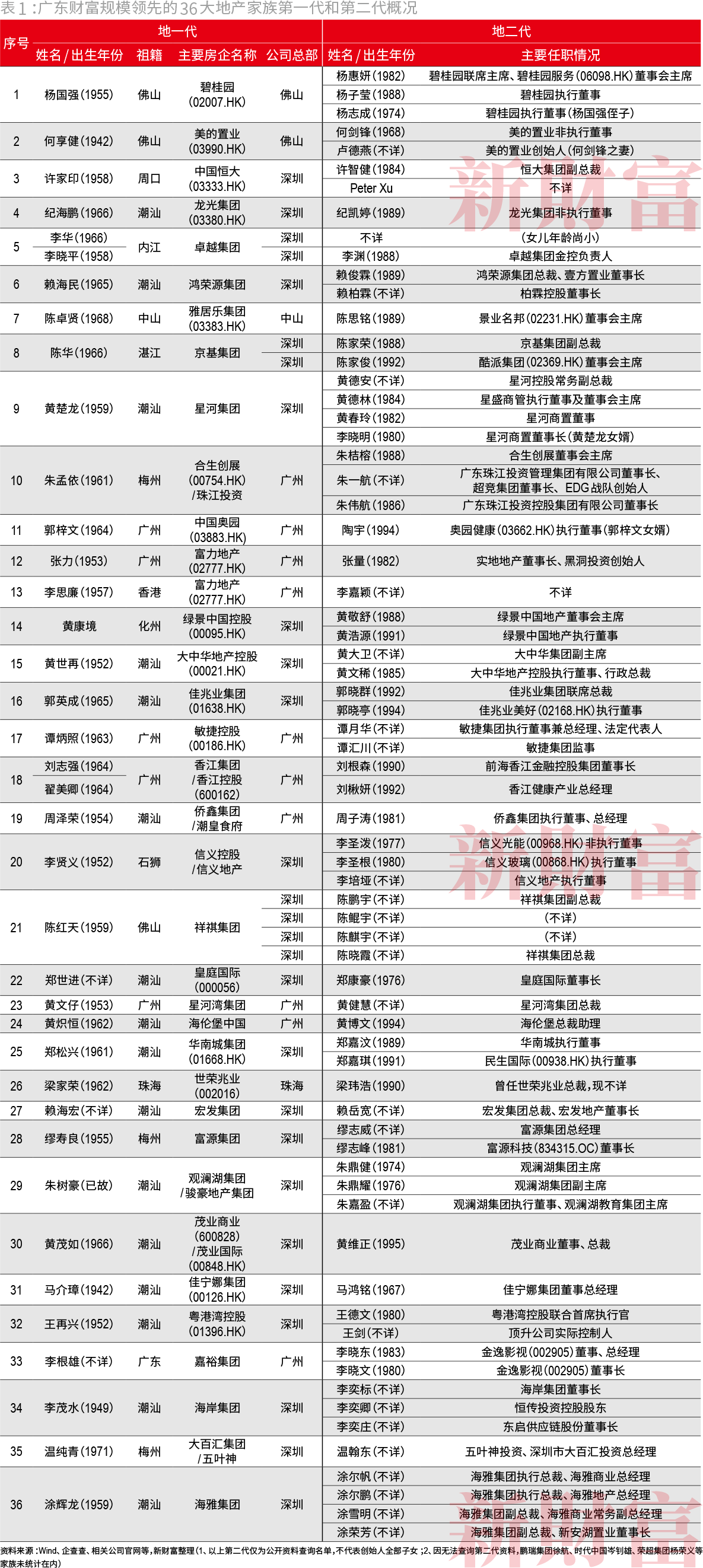 少帅与名媛成为活跃在华南地产圈的一个独特群体。新财富综合克而瑞地产销售规模排行榜及新财富500富人榜的家族财富规模两份数据,筛选了广东36家规模领先的地产商家族第二代的资料,以管窥这一群体的发展状况。