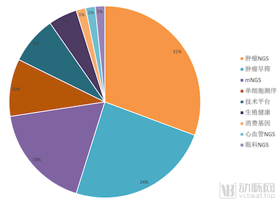 2020年,31%的融资事件发生在肿瘤NGS领域,是基因检测融资最密集的应用场景。其后则是肿瘤早筛,占比24%。此外,融资事件数量排名第四的单细胞测序项目,也主要围绕肿瘤展开,包括肿瘤新药研发和临床支持。值得一提的是,mNGS融资事件数量在2020年排名第三,院内病原感染诊断仍然是基因检测十分火热的应用领域。