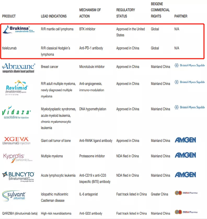 ▲百济神州的商业化产品(更新至2020年2月29日)