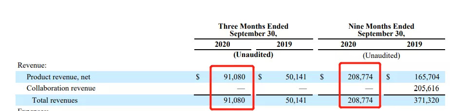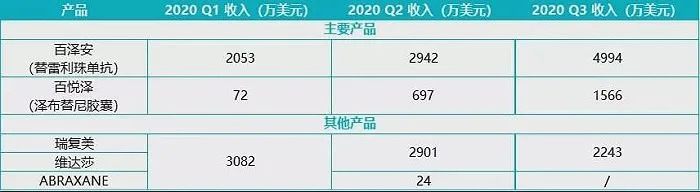 2020年前三季度,百济神州产品营收2.09亿美元,同比+26%。