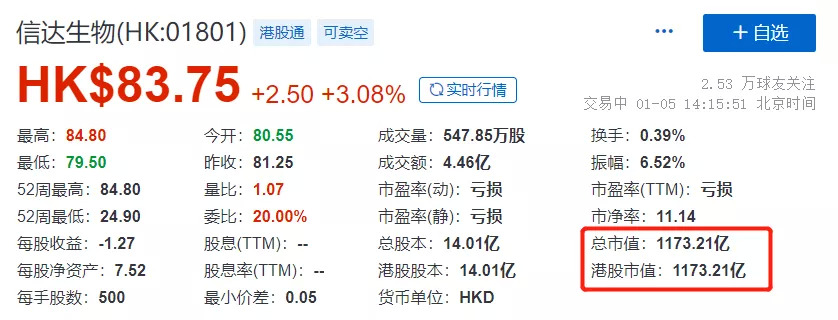 截至目前,信达生物股价高达1173亿港元。相较于13.98港元/股的发行价,增长499%。