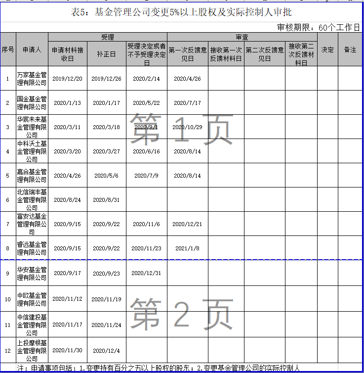 证监会行政许可事项显示,除了睿远基金外,万家、国金、华宸未来、华安、中欧、上投摩根等基金公司也正在申请《变更5%以上股权及实际控制人》审批。