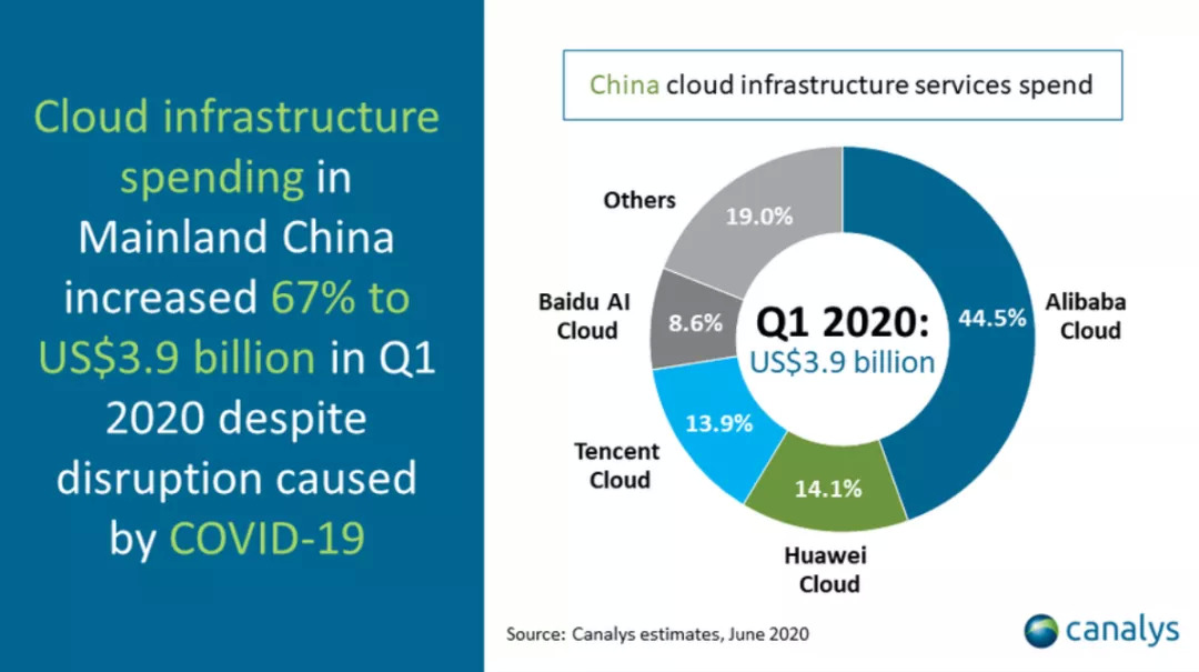 华为云2020年第一季度市场份额占比,图源Canalys官网