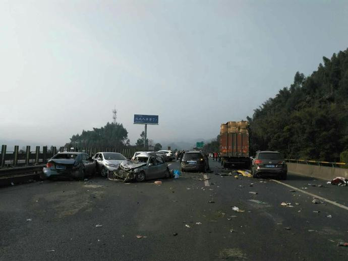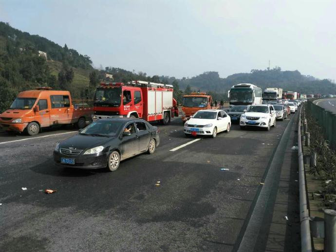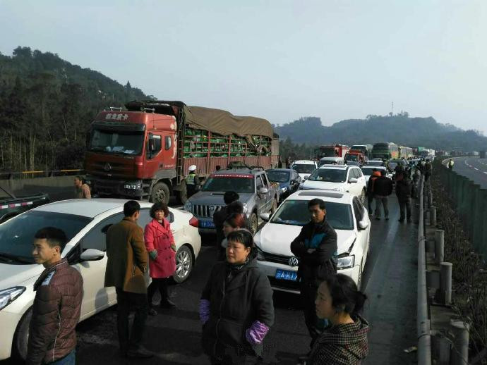 1. 今早7点30分,重庆巴南区绕城高速巴南收费站往江津方向5公里处,发生38辆车连环相撞事故。