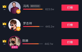 抖音明星爱DOU榜也与微博明星的排行榜并不重合。在抖音,位居前三的是冯巩、罗志祥和陈赫;而微博榜单的前三位则是肖战、蔡徐坤和王一博——这三位艺人同样都入驻了抖音平台,在爱DOU榜上排在30名开外。