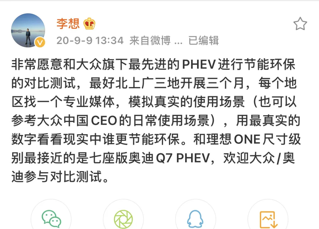 在情怀之外,李想的个人特质也是人们的谈资,今年年中有关增程式电动车的讨论在业内甚嚣尘上,9月,大众汽车冯思翰提及不同的电动车技术路线,指出增程电动车是最糟糕的方案;大众集团威德曼则评论从单车角度看,增程电动车发展潜力不大。