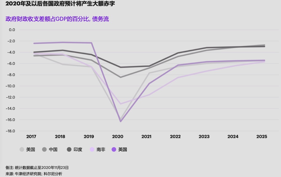 2019至2020年,为应对新冠疫情对经济的打击,各国政府采取了极端的财政和货币政策,导致财政赤字飙升。而政府财政赤字不断攀升对宏观经济和受公共财政影响较大的关键部门都可能产生重大冲击。