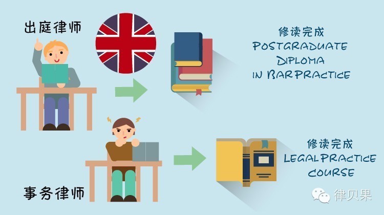 英国没有统一的执业考试,只有通过法律实习课程的结业考试,才可申请律师事务所实习,立志成为出庭律师的,修读完成Post graduate Diploma in Bar Practice,而立志成为事务律师的,修读完成Legal Practice Course。在完成律师事务所的实习后,由英国非出庭律师协会(Law Society)或英国出庭律师公会(Bar Council))纳为正式成员,成为注册执业的事务律师或者出庭律师。