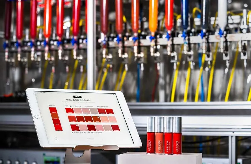 在实际场景应用中,线下店的导购可为消费者推荐适合肤色的唇色,可在现场实时制造唇妆产品。据称,该系统能够实时制造2000多个色号的唇妆产品。