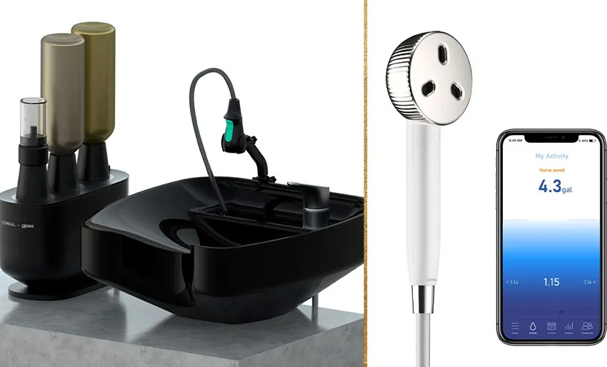 这是面向美发沙龙推出的以节约水和能源为导向的可持续头发护理系统,可以将欧莱雅和Gjosa的定制混合产品(如护发素、洗发水等)注入到水流中。