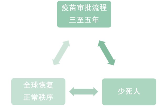 在“三者只能成其二”的处境下,各国政府都选择突破原有的疫苗审批流程,以最快速度研发新冠疫苗防止公共卫生局势与经济秩序的进一步恶化。