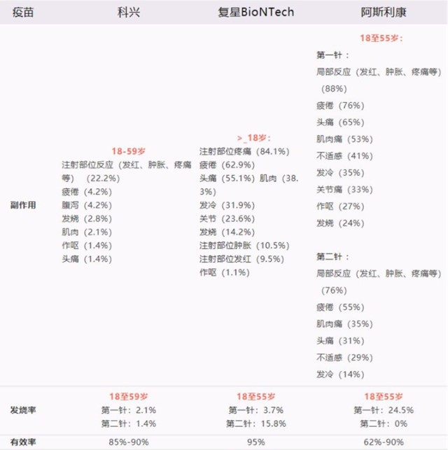 ▲主要新冠疫苗不良反应统计 来源:香港中文大学高琦博士