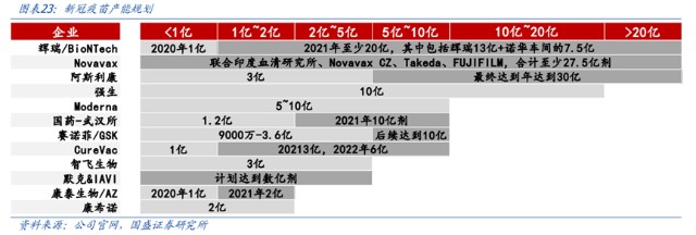 ▲各医药公司新冠疫苗产能规划 来源:国盛证券研究所、各公司官网据中金研究院预测,新冠疫苗的产能将在2021年第一季度经历快速爬坡的过程,但最早也需要在2021年第二季度才能满足多数国家的需求。在疫苗的接种策略上,我国也是根据疫苗产能的爬升逐步扩大疫苗的接种人群。从2020年6月对高风险人群开展的紧急接种,到12月15日正式宣布启动重点人群的接种工作,我国在疫苗的研发与推广上始终走在世界前列。