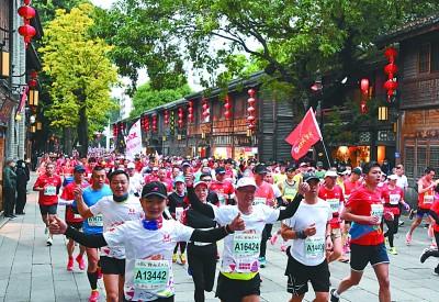 马拉松选手跑过福州南后街。 叶义斌摄/光明图片