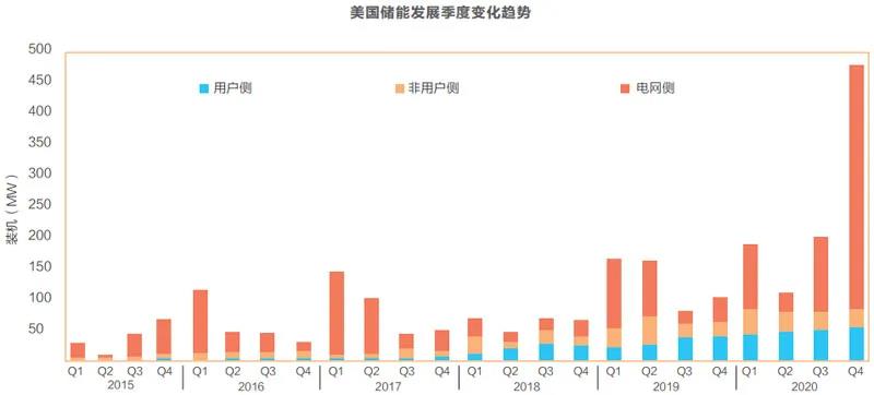 在回答这个问题之前,我们先看一则新闻。根据美国储能协会(ESA)和伍德麦肯锡咨询公司联合发布的报告,美国储能市场在2020年第三季度装机476MW/764MWH,比之前的单季度装机记录——也就是2020年的第二季度——增长了240%。