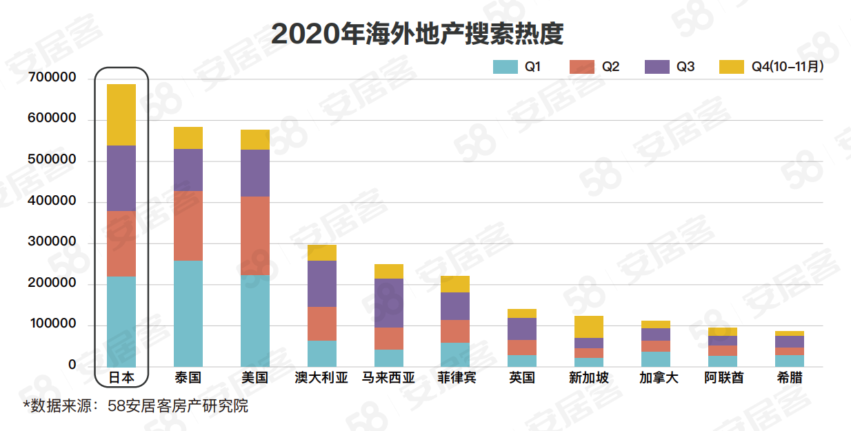 58同城、安居客发布的《2020年日本房地产市场报告》中指出,日本代替泰国成为2020年海外地产搜索热度TOP1,搜索量超过泰国18%。