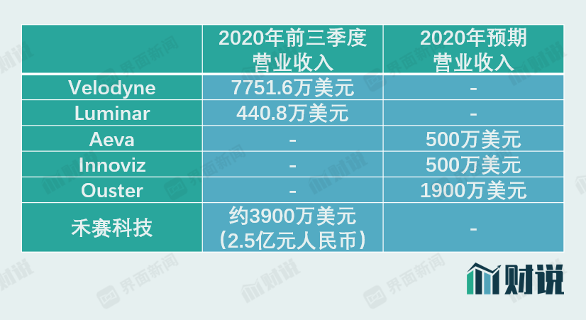 而从销售额看,Velodyne2020年前三季度营收达到7751.6万美元,规模最大,禾赛科技紧随其后,Ouster、Luminar、Aeva、Innoviz等规模相对较小。