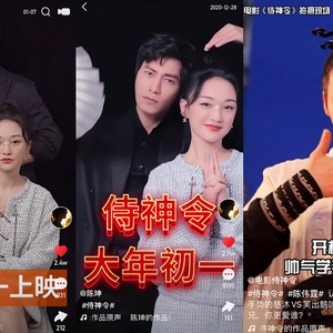 此外,截至目前,《侍神令》的快手号还未发布任何作品,陈坤的个人快手号才是《侍神令》电影的第一宣发位;《新神榜:哪吒重生》则是唯一一部在抖、快双平台上同步营销的电影,抖音号拥有6.1w粉丝,发布作品43个,快手号拥有4.5w粉丝,作品数有55个,它也许在营销效果上不及前三强,但它是营销覆盖面最广的片方。