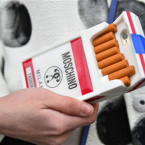 如今,Jeremy Scott 将香烟重新带回来。这个手机壳上印着“ Fashion Kills ”, 单价 47 欧元,约合人民币 433 元,并不便宜。Moschino 希望借这些有趣的小物来保持自己诙谐的品牌形象。