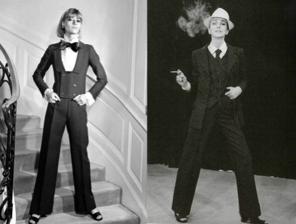 吸烟装原是男士在晚宴后坐在吸烟室里抽烟而换上的黑色便装。而圣罗兰在20世纪60年代,用一件女性吸烟装开启了女权主义的启蒙,领结、马甲、铅笔裤、金属配饰、甚是礼貌、皮手套等等,这些曾经颇具上流男性特质的物品都在女性身上流露出了另一种高贵。倒三角形的女性,在当时塑造了女强人的形象,打破了社会传统,不再为绅士所独有,经过时代的演变,吸烟装也发展出了多种形式,一直流传至今。