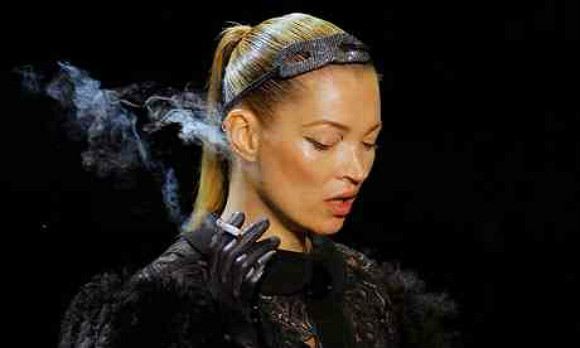 当然,对香烟的迷恋不一定要以具象的形式出现,比如 Louis Vuitton。2011年的巴黎时装周上,Kate Moss 重登T台,她穿着高跟鞋和热裤站在那里吞云吐雾。当时的评论人们都说,在时尚的世界里,比漂亮姑娘更有魅力的是有一点坏的姑娘。
