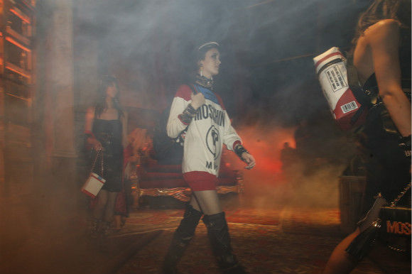 对于已经玩过芭比娃娃、麦当劳和洗衣液的 Moschino 来说,各种生活常见的物品被应用于设计都不足为奇。但是香烟,对于时尚来说,却像一个循环往复的魔咒,品牌们对它的迷恋过一阵子就会爆发一次,就像如今的 Moschino,用香烟和火来表现“虚荣的篝火”这个主题,有种触目惊心的美。