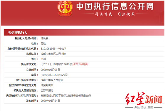 如今,谭鱼头多家公司已经被吊销。据企查查数据显示,最重要的一家公司成都谭鱼头投资股份公司2017年被列为失信公司,先后7次被列为限制高消费企业。谭长安自己也成了“老赖”,先后10余次被列为失信执行人。