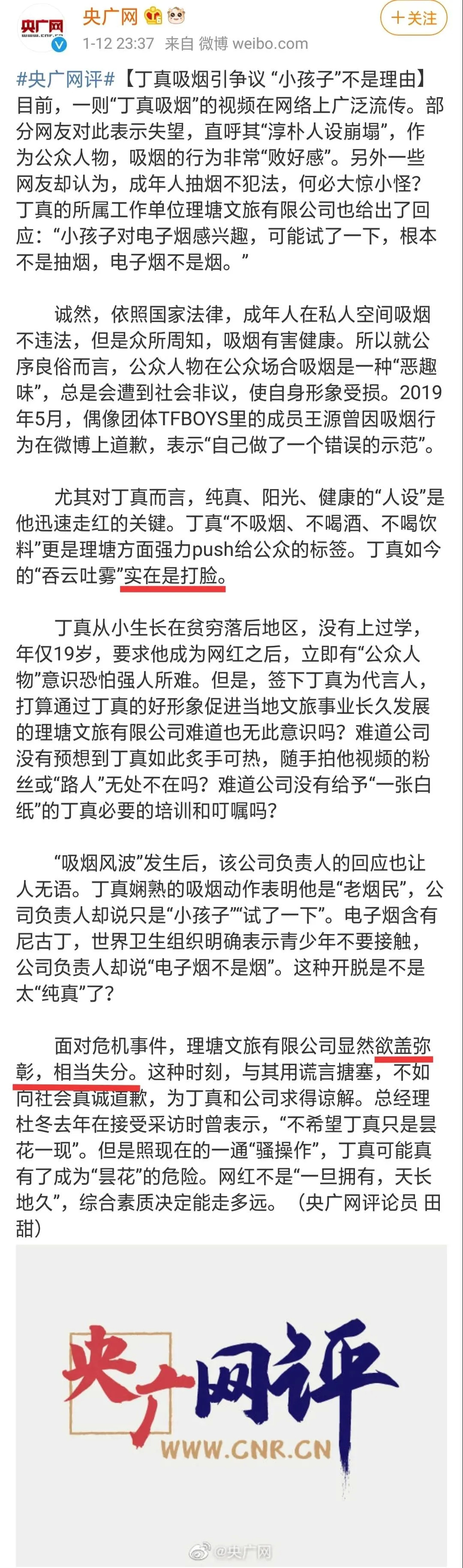 央广网的一则批评评论更是直指,“纯真、阳光、健康的‘人设’是他迅速走红的关键……丁真如今的‘吞云吐雾’实在是打脸”。