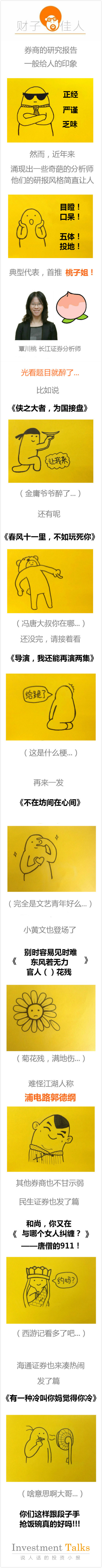 本文为财子佳人原创作品。特别感谢董婧怡(Cathy)为本文绘制插画。参考文章:《覃川桃:卖方分析师的江湖》《长江证券研报业务被认定违规,“桃子姐”个性研报被禁?》《不会写段子的分析师不是好券商》;桃子姐照片来源:百度图片。风险提示:本文不构成任何投资建议,对内容的准确与完整不做任何承诺与保障。过往表现并不保证未来业绩,投资可能带来本金损失;任何人据此做出投资决策,风险自担。