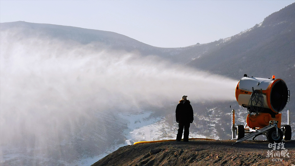 △国家跳台滑雪中心造雪机工作现场(总台央视记者张晓鹏拍摄)