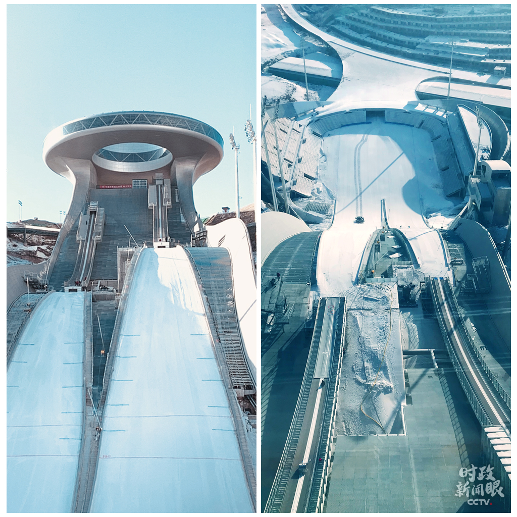 △这是落差为114.7米的标准跳台滑雪赛道。(总台央视记者邢彬拍摄)