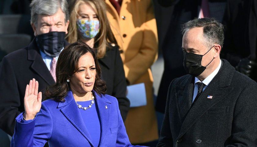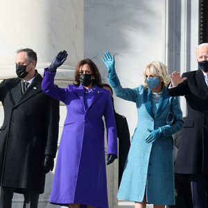 Gaga献歌之后,身着宝蓝色正装的哈里斯宣誓就任美国副总统。这标志了美国历史上第一位女性副总统的诞生。哈里斯成为美国历史上职位最高的女性,也是第一位担任国家副总统的美国黑人和第一位南亚裔人士。