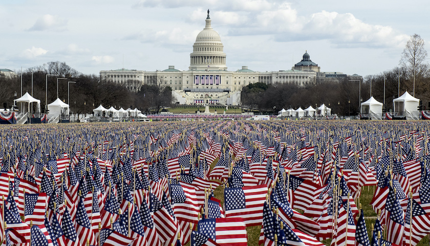 在就职的前一晚,这些旗帜被56个光柱照亮,代表50个州、首都华盛顿和5个海外领地。这一过程大约耗时46秒,以此向第46任总统致敬。