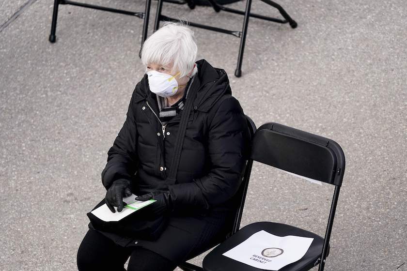 因为当地天气寒冷,出席典礼的前美联储主席耶伦、拜登之前的党内竞争对手桑德斯等人裹得严严实实,获得了摄影师的关注。耶伦已被拜登任命为财政部长,近日正接受国会听证。