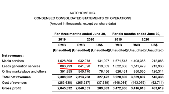 尤其是,这点增长跟Q1、Q2季度的同比下滑相比,更不值一提。今年Q2,汽车之家媒体业务营收9.32亿元,去年同期为10.28亿元,下滑9.35%;销售线索收入为8.41亿元,去年同期为8.89亿元,下滑5.4%。Q1汽车之家的媒体服务收入为5.66亿元,同比下滑12%;线索销售业务收入为6.71亿元,同比下滑8.7%。