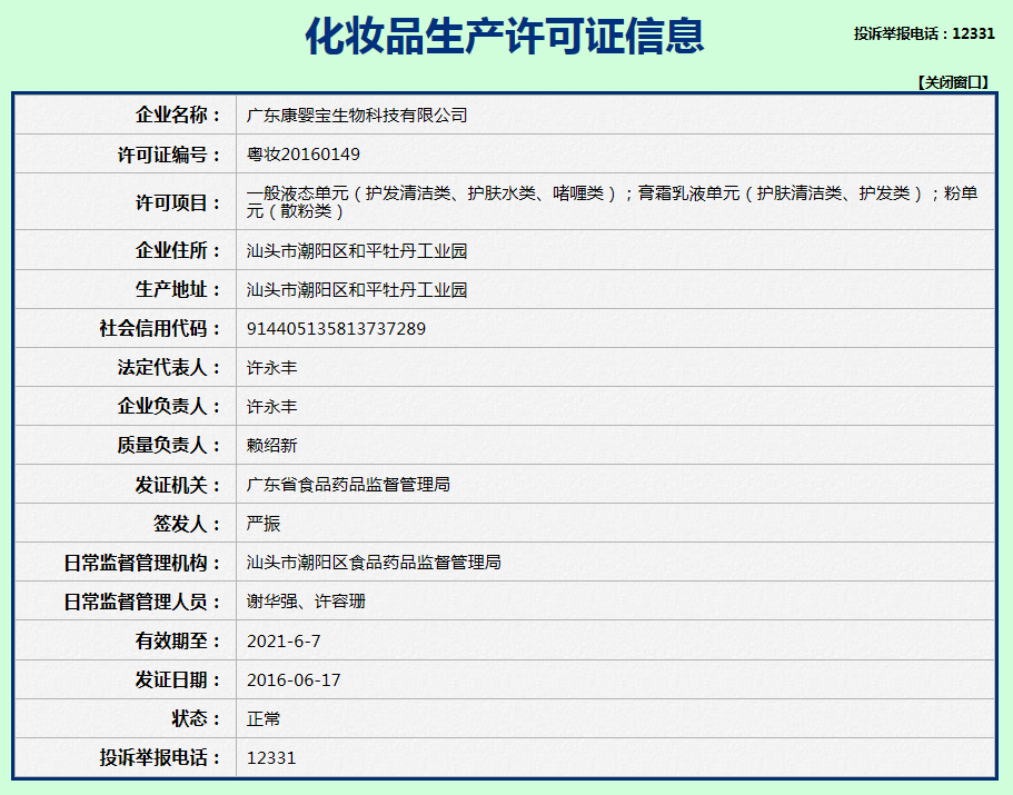 广东省药监局网站显示,2020年康婴宝又因“康婴健婴儿橄榄洗发沐浴露”不符合卫生标准,被没收违法所得并处以12.25728万元罚款。
