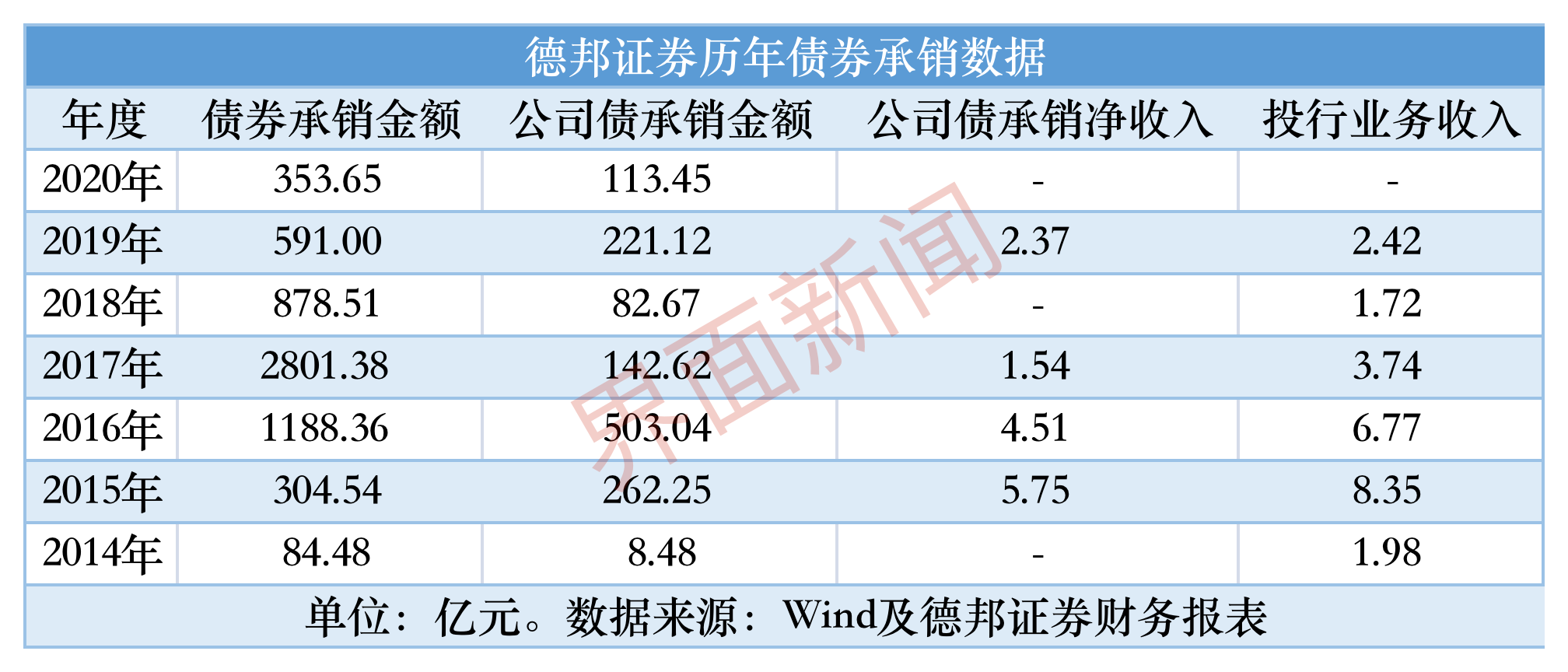 2016年,德邦证券债券承销再上一个台阶。财报显示,德邦证券当年公司债承销金额为503亿元,项目净收入为4.51亿元。