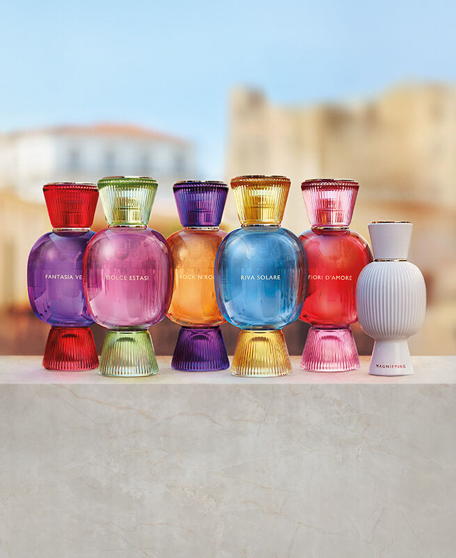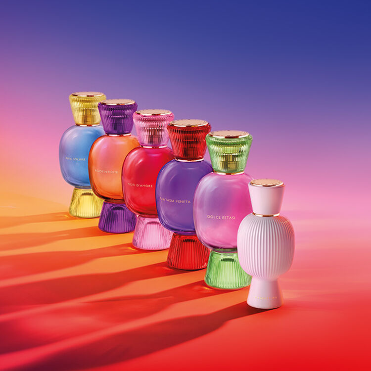 系列含5款彩色瓶香氛,包括带有东方香料元素的Rock N Rome微醺罗马,清新橘子调的Riva Solare璀璨骄阳,红玫瑰香的Fiori D’Amore,西普香型果味调的Fantasia Veneta梦幻派对,以及粉质花香调的Dolce Estasi甜美狂想。