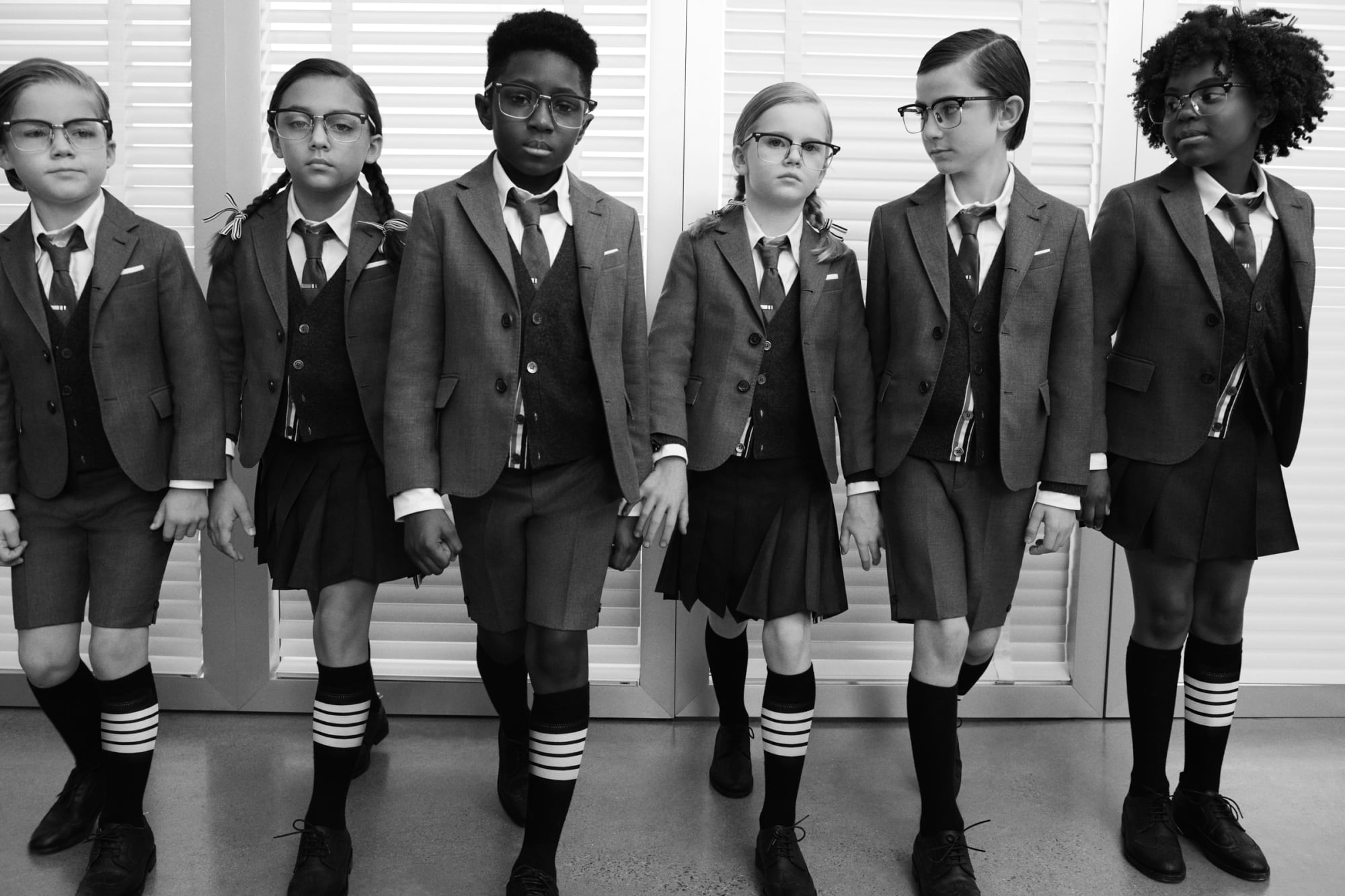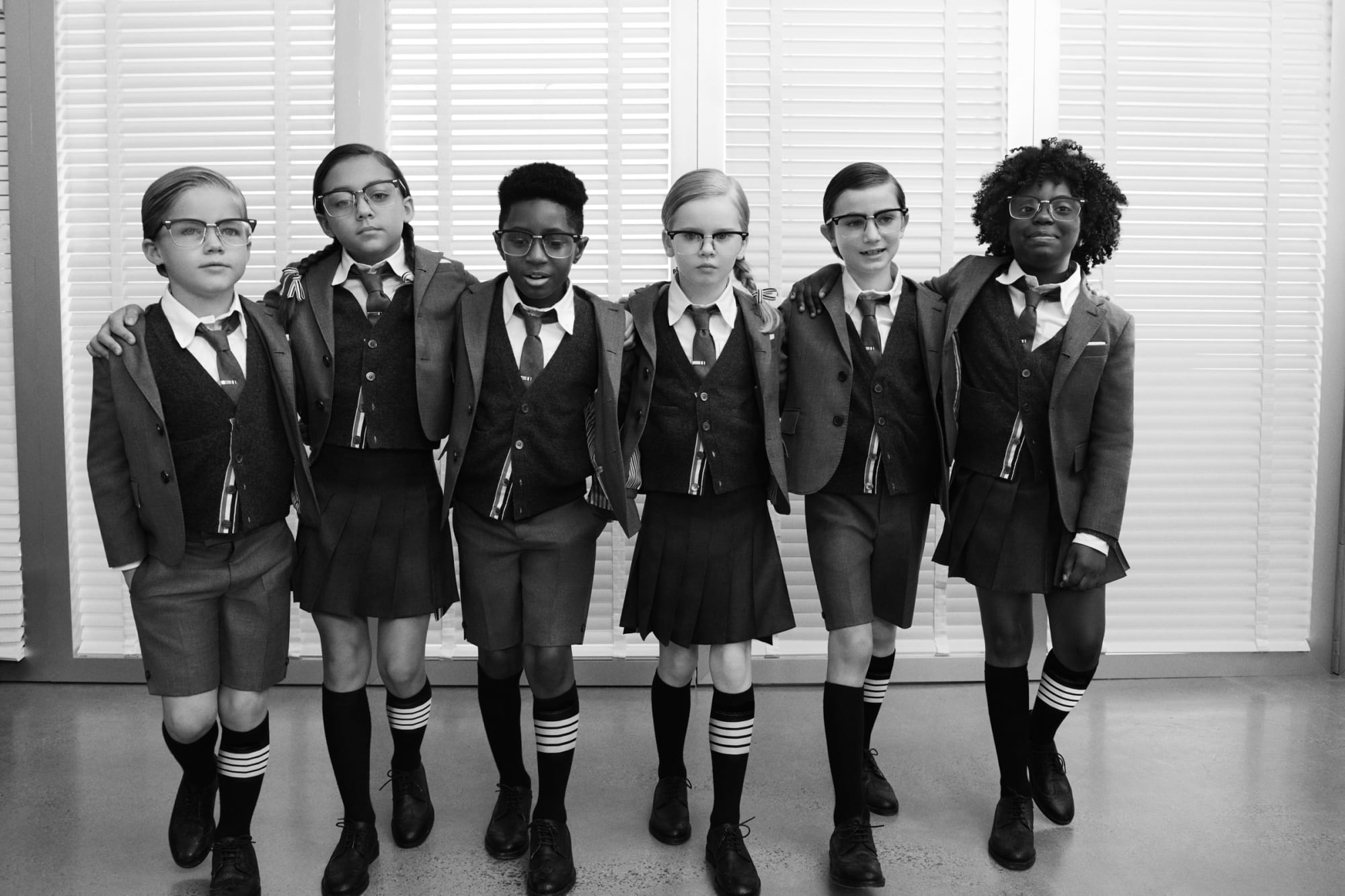 Thom Browne开始拓展品牌的童装业务了。在筹备了一年后,Thom Browne 日前在2021秋冬巴黎男装周上发布了品牌首个童装系列Thom Browne Childrenswear,并以纽约摄影师Cass Bird拍摄的黑白影片特别呈现。影片中,6个不同族裔的孩子身着Thom Browne经典服饰的迷你版本,在办公室内尽情玩乐,张扬独特个性。