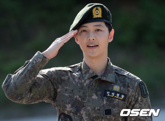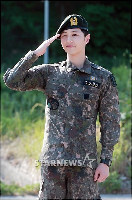 宋仲基通过电视剧《善良的男人》和电影《狼族少年》跻身一线男演员,在2013年8月时进入江原道春川102连队服兵役。来看看现实生活中宋欧巴军队里的照片: