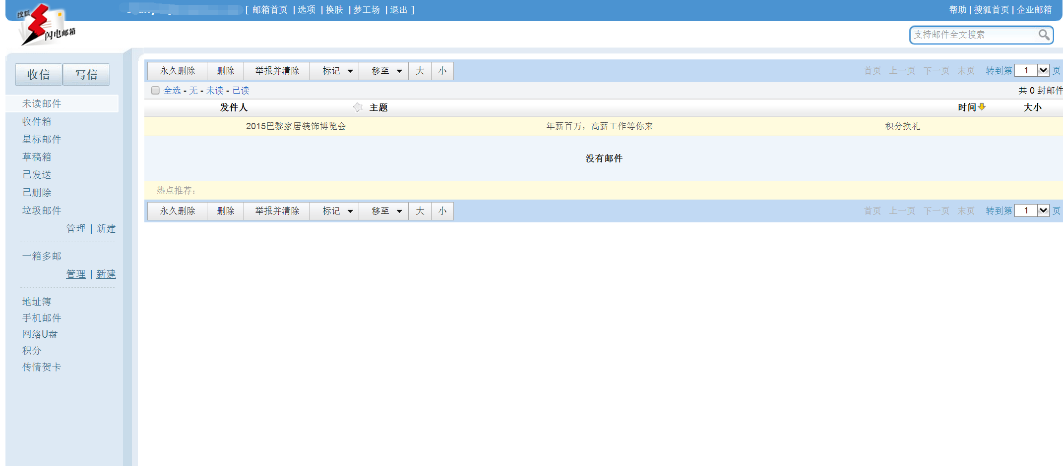 SOHU邮箱也是老牌邮箱,界面比较简单对收件箱和垃圾邮箱有明确区分。如图4所示